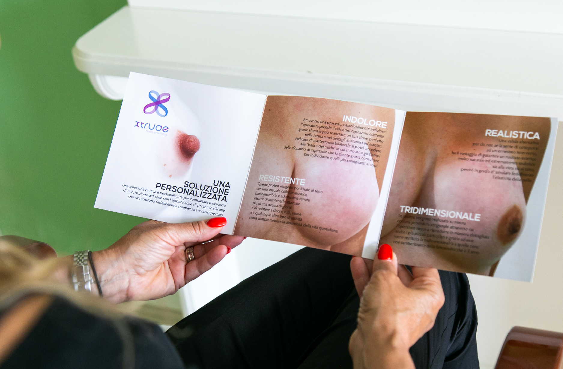 Le soluzioni estetiche proposte sono date dalla realizzazione della areola tramite dermopigmentazione e/o tramite una tecnica innovativa che consente di realizzare protesi esterne in silicone riprodotte manualmente, quindi personalizzate e realistiche, offrendo un aspetto identico al vero.
